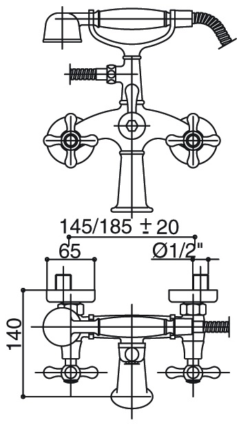 Bongio Axel bateria wannowa ścienna z prysznicem
