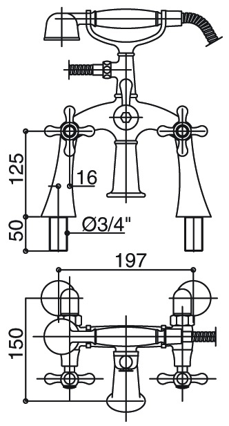 Bongio Axel bateria wannowa stojąca z prysznicem 15527