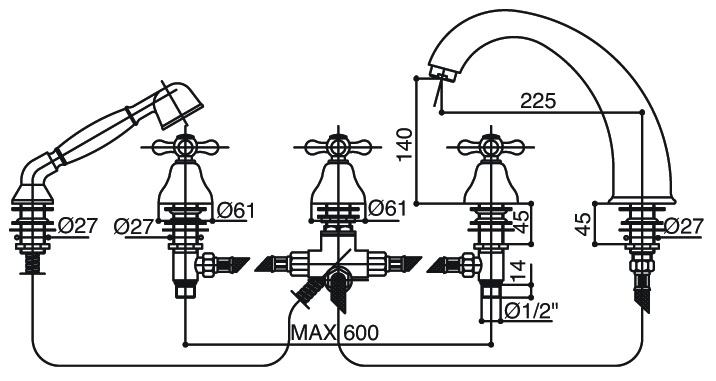 Bongio Axel bateria wannowa 5-otworowa z prysznicem 15531/D