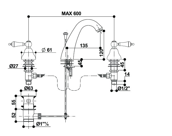 Bongio Capri bateria umywalkowa 3-otworowa 17501