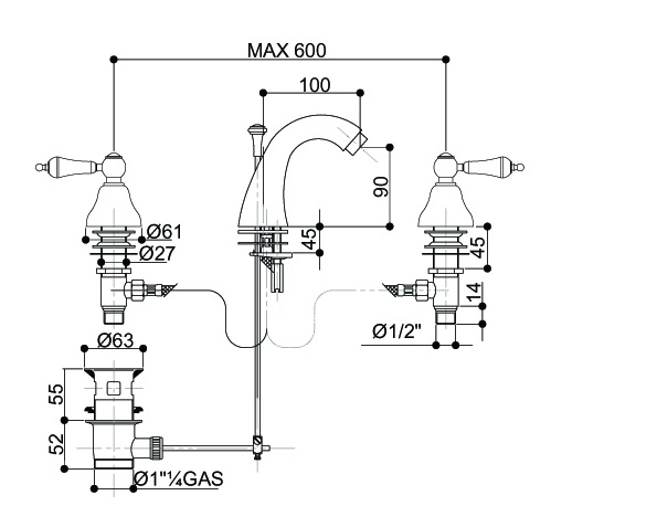 Bongio Capri bateria umywalkowa 3-otworowa 17501/B