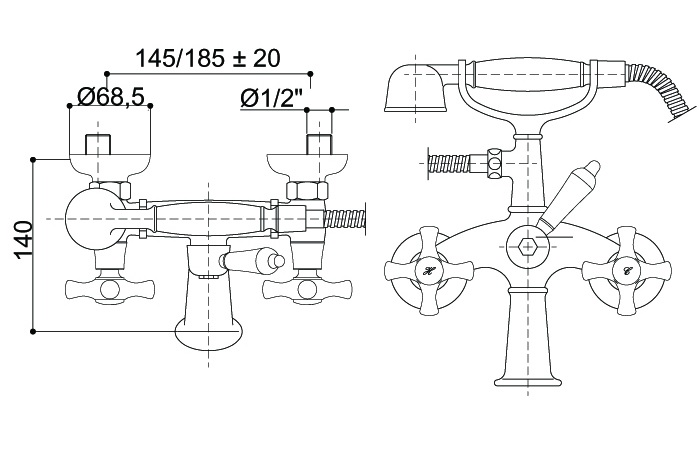 Bongio Coco bateria wannowa ścienna z prysznicem 16526