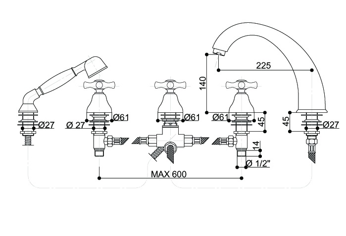 Bongio Coco bateria wannowa 5-otworowa z prysznicem 16531/D