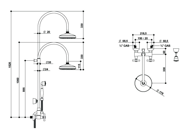 Bongio Coco bateria prysznicowa ścienna z prysznicem i deszczownią 16537/D