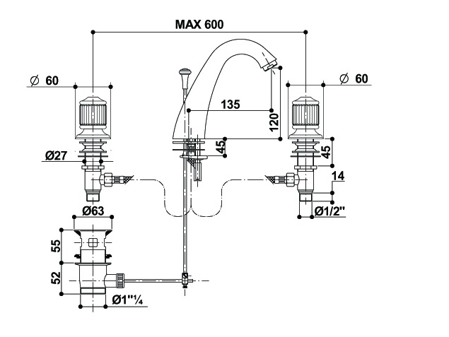 Bongio Cristallo bateria umywalkowa 3-otworowa 04501