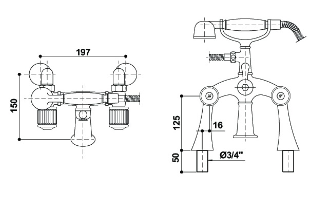 Bongio Cristallo bateria wannowa stojąca z prysznicem