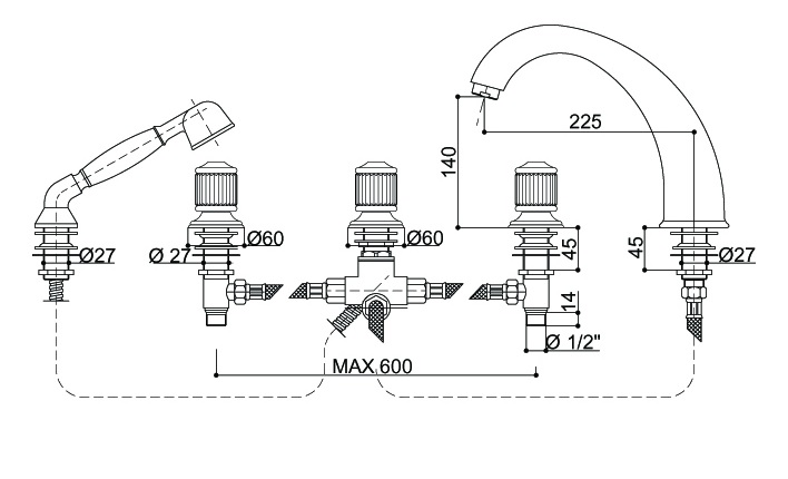 Bongio Cristallo bateria wannowa 5-otworowa z prysznicem 04531/D