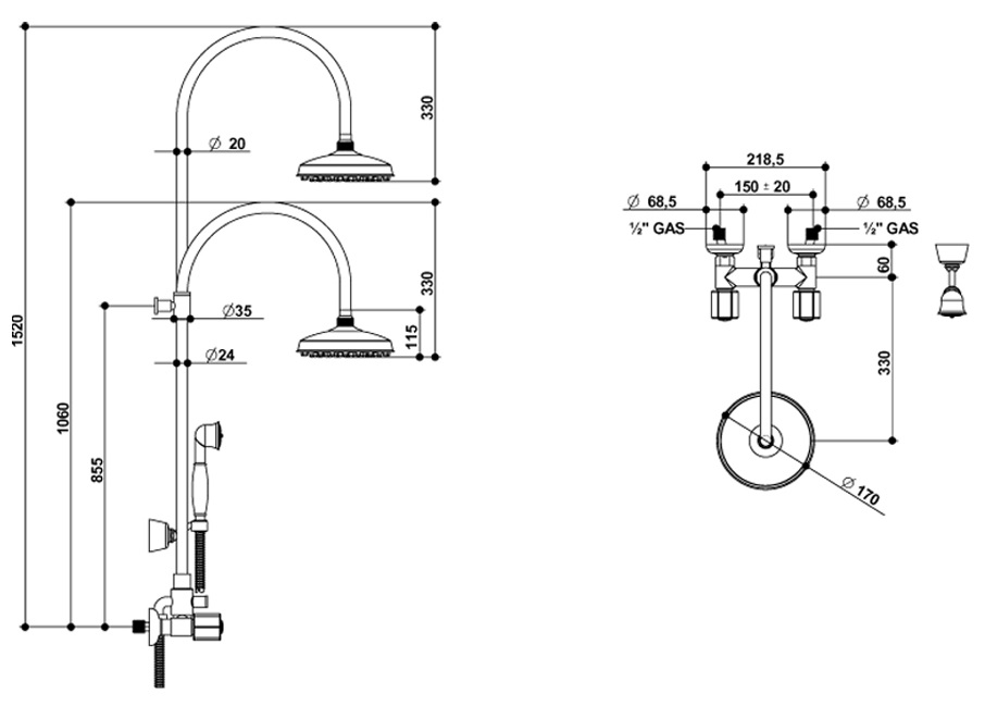 Bongio Fleur Blanc bateria prysznicowa ścienna z prysznicem i deszczownią 11537/D