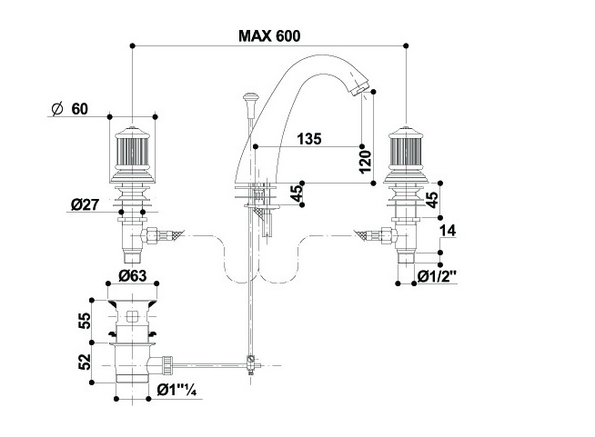 Bongio Impero bateria umywalkowa 3-otworowa 06501