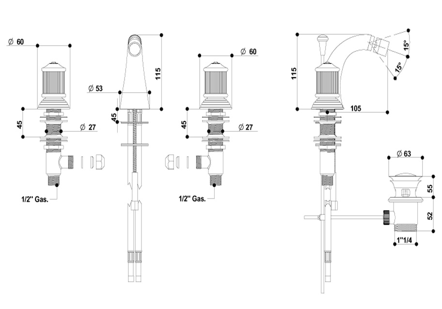 Bongio Impero bateria bidetowa 3-otworowa 06503