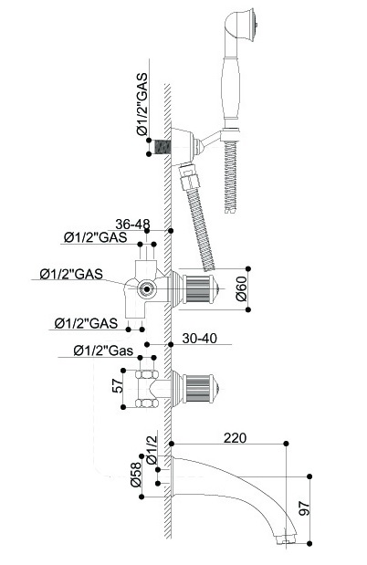Bongio Impero bateria wannowa podtynkowa z prysznicem 06530/D