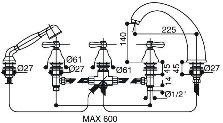 Bongio Mille Nuits bateria wannowa 5-otworowa z prysznicem