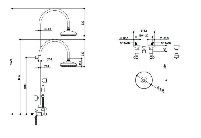 Bongio Mille Nuits bateria prysznicowa ścienna z prysznicem i deszczownią