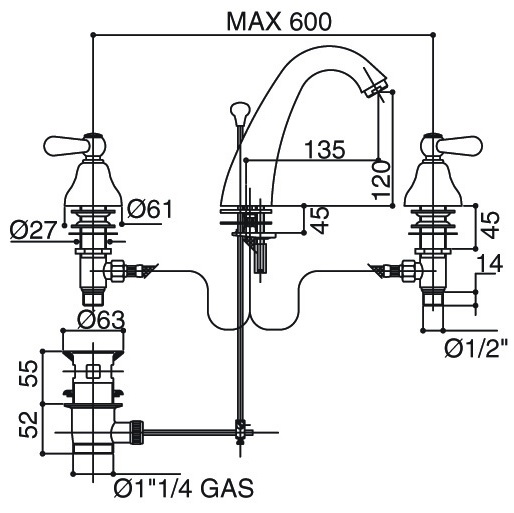 Bongio Oxford Lux bateria umywalkowa 3-otworowa 19501