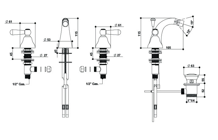 Bongio Oxford Lux bateria bidetowa 3-otworowa