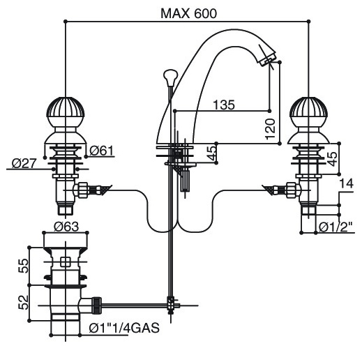 Bongio Radiant bateria umywalkowa 3-otworowa 02501