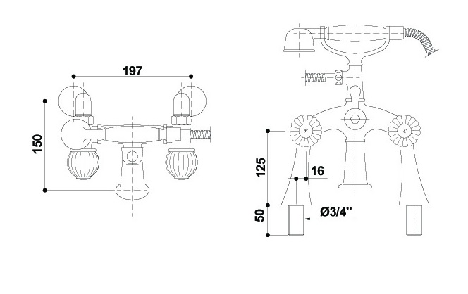 Bongio Rivolì bateria wannowa stojąca z prysznicem