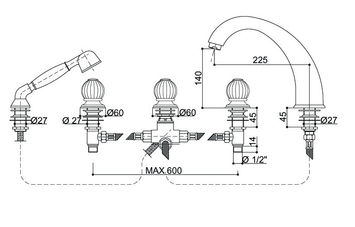 Bongio Rivolì bateria wannowa 5-otworowa z prysznicem