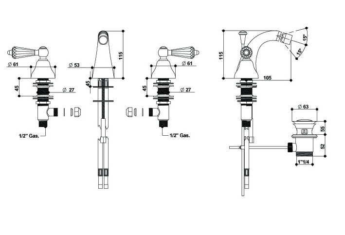 Bongio Zenith bateria bidetowa 3-otworowa 23503