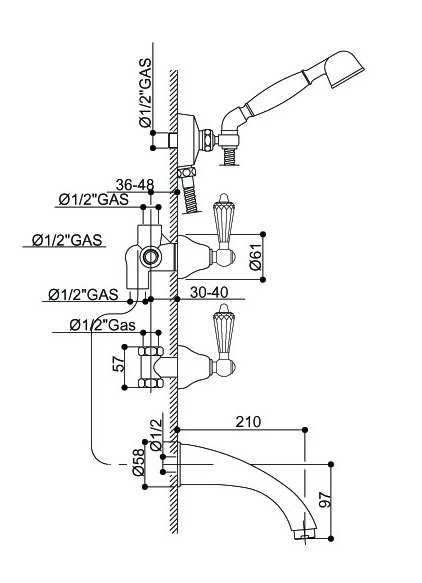 Bongio Zenith bateria wannowa podtynkowa z prysznicem