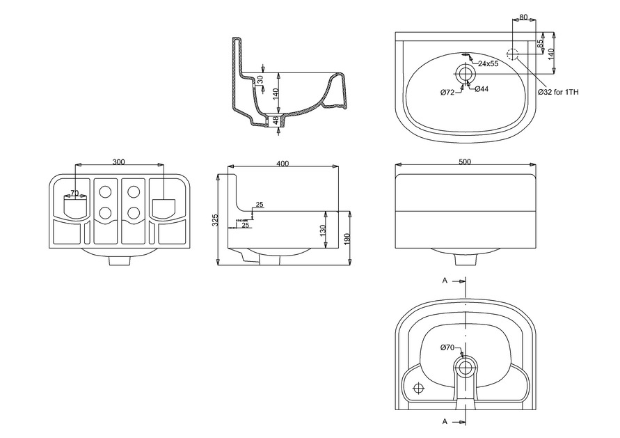Arcade Umywalka ścienna z przelewem 1-otworowa prawa 50 cm biały ARC5001THRH