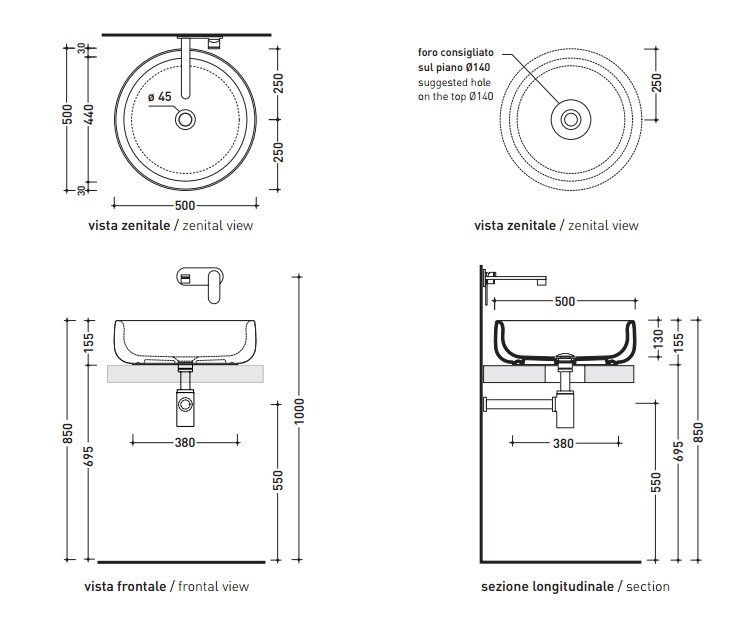 Flaminia Bonola Umywalka Stawiana na blat 50 cm biała BN50A