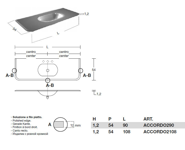 Antonio Lupi Ilbagno Umywalka meblowa 90x54 cm szkło lakierowane ACCORDO290