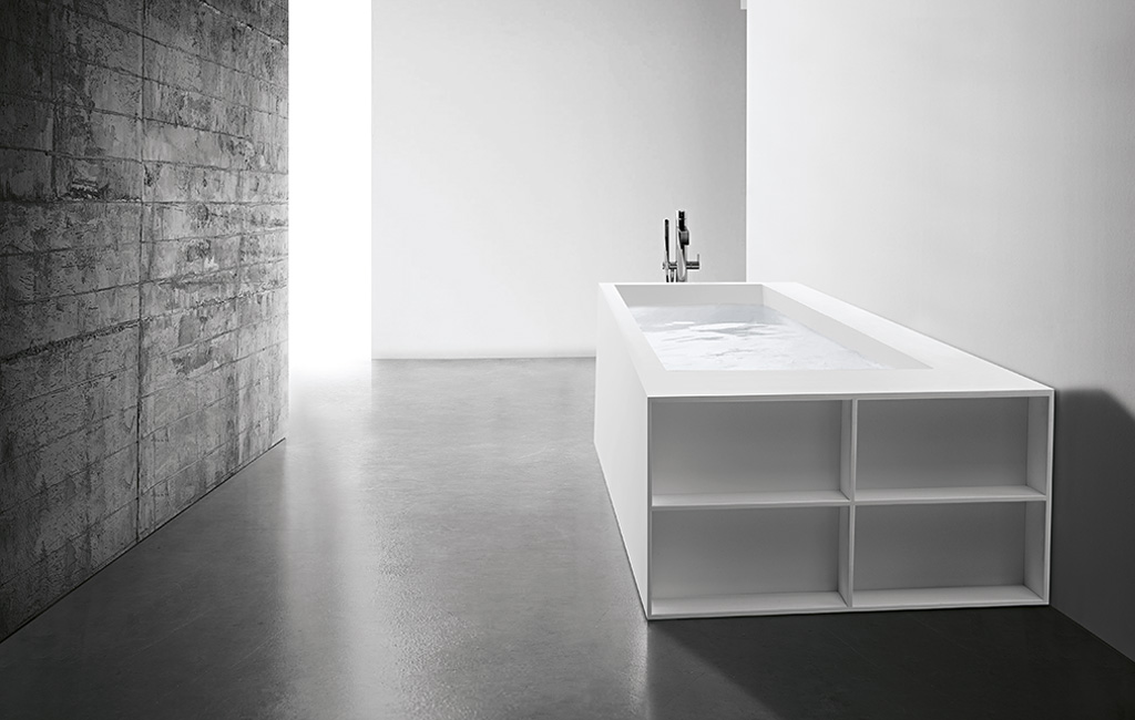 Antonio Lupi Biblio Wanna prostokątna z półkami lewa 190x80 cm biała BIBLIO42