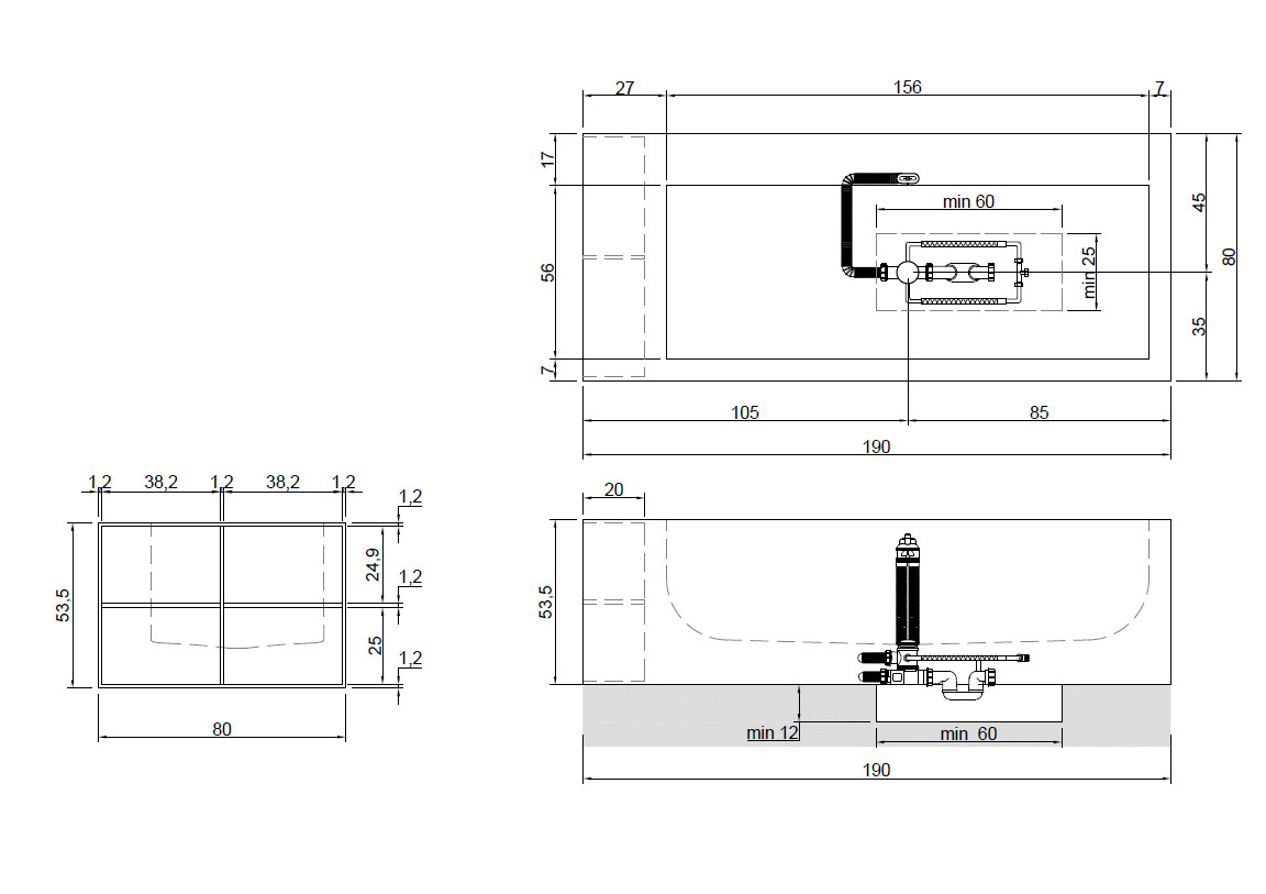 Istnieje możliwość zamówienia wanny zabudowanej z 3 lub 4 stron za dopłatą