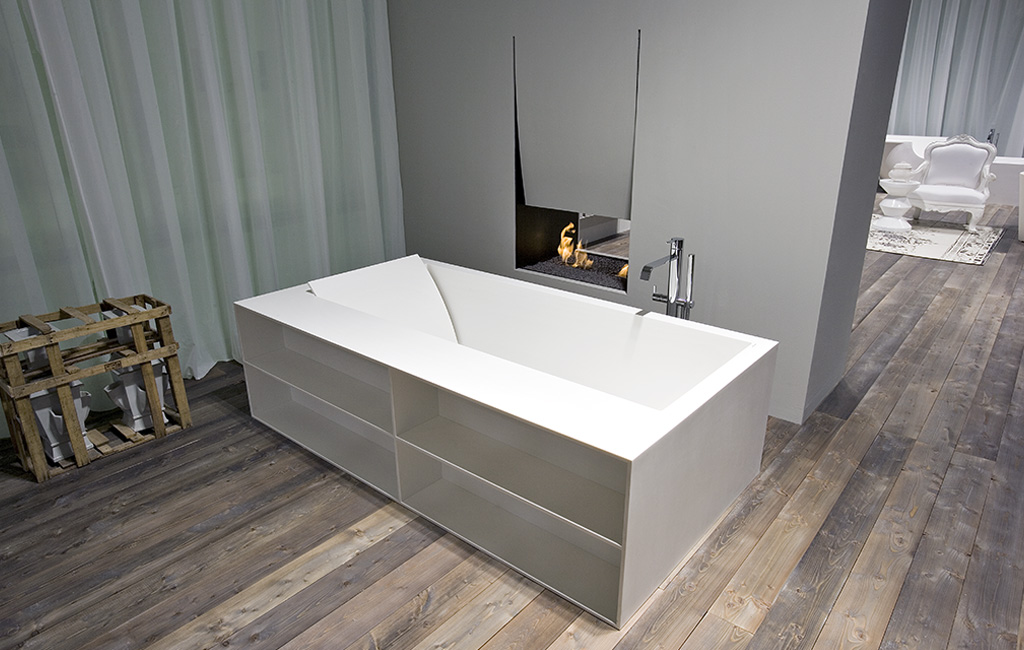 Antonio Lupi Biblio Wanna prostokątna z półkami 170x90 cm biała BIBLIO52