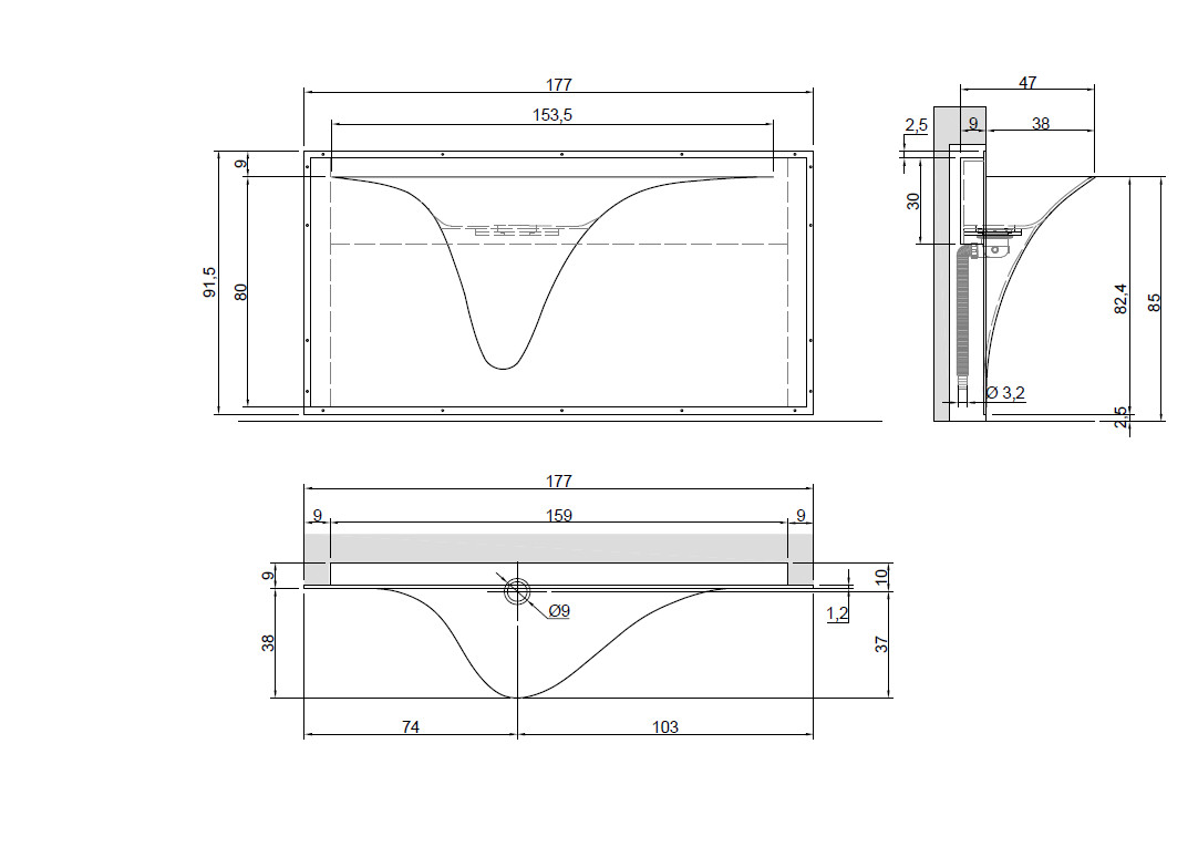 Antonio Lupi Silenziol Umywalka Ścienna z podświetleniem LED 47x177 cm biała SILENZIOL