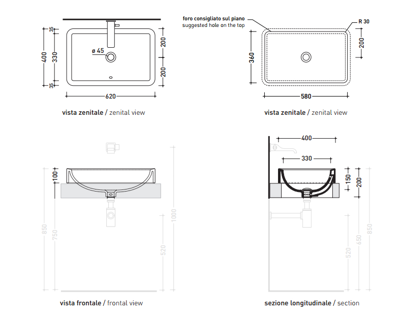 Flaminia Nile Umywalka wpuszczana w blat 62x40 cm biała NL62INC