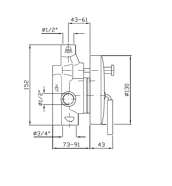 Jednouchwytowa bateria wannowo-natryskowa podtynkowa z przełącznikiem.