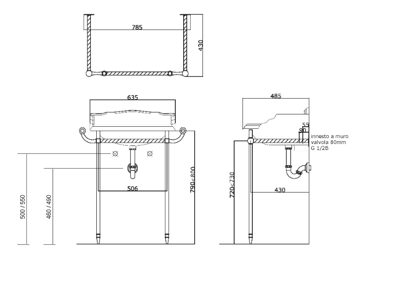 Konsola w kolorze chrom, możliwość zamówienia w kolorach: incalux (9099), złoto (9099-ORO), na zapytanie