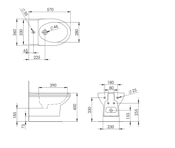 Gentry Home Victorian bidet Wiszący z otworem na baterię biały 2014