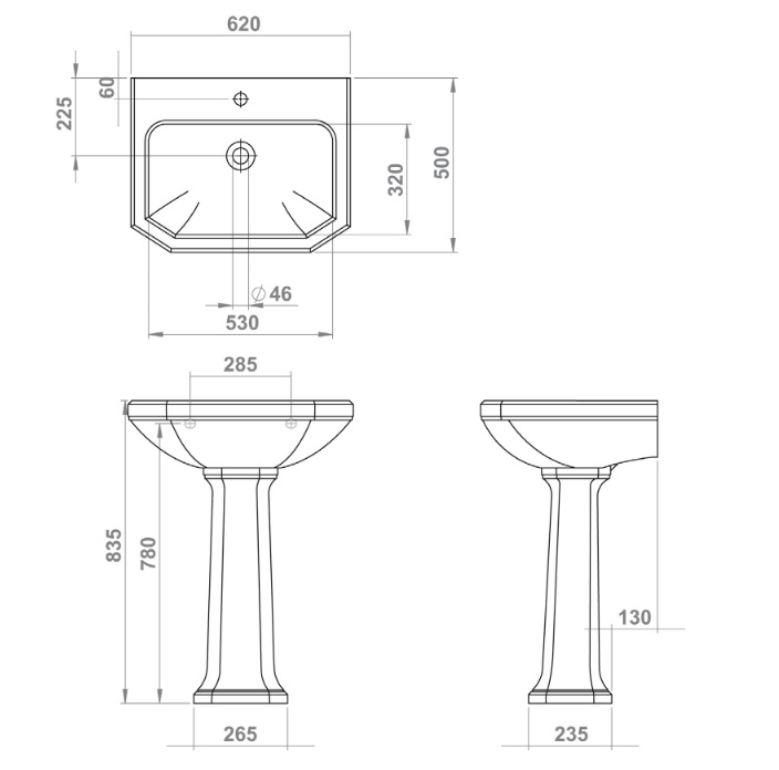 Możliwość zamówienia umywalki z dwoma lub trzema otworami (proszę o podanie w zamówieniu ile otworów na baterię ma posiadać umywalka)