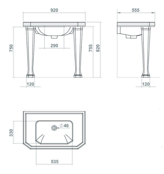 Umywalka 92x55,5 cm 1-otworowa 2218, 2-otworowa 2219, 3-otworowa 2217