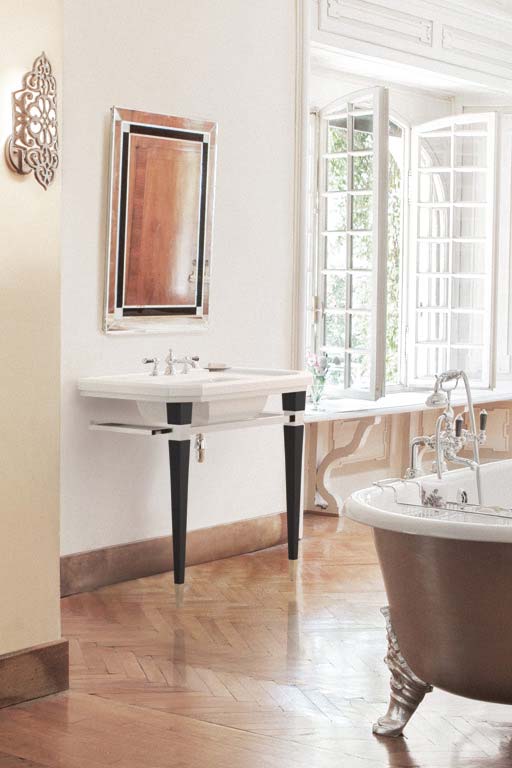 Materiał drewno barwione na czarno, mosiądz chromowany
