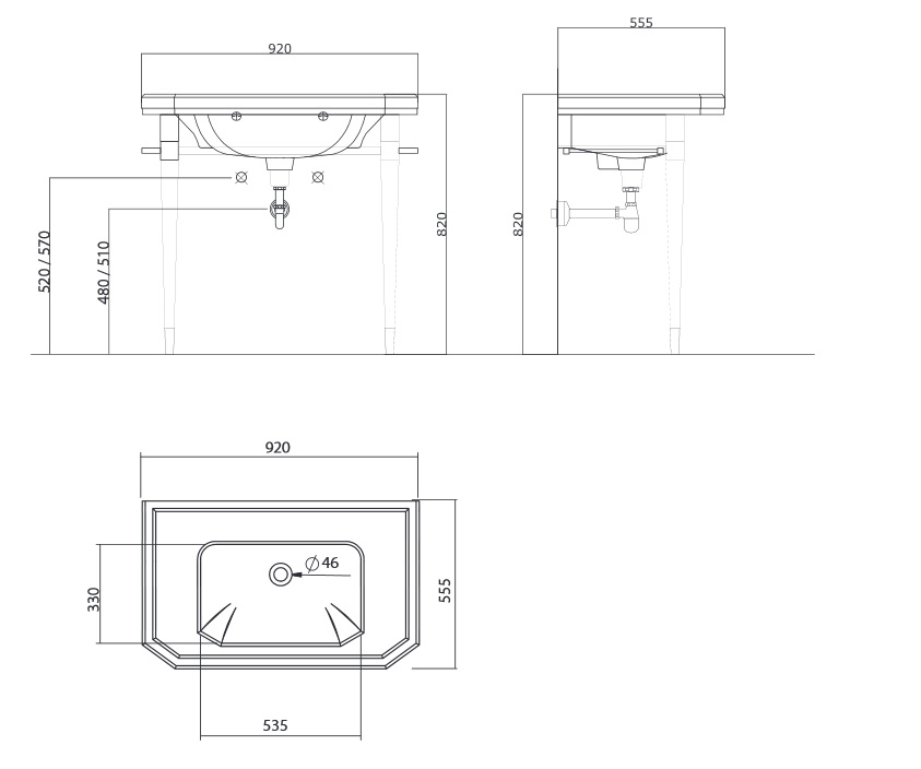 Umywalka 1-otworowa 2218, 2-otworowa 2219, 3-otworowa 2217