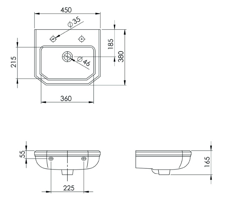 Możliwość zamówienia umywalki z dwoma lub trzema otworami (proszę o podanie w zamówieniu ile otworów na baterię ma posiadać umywalka)