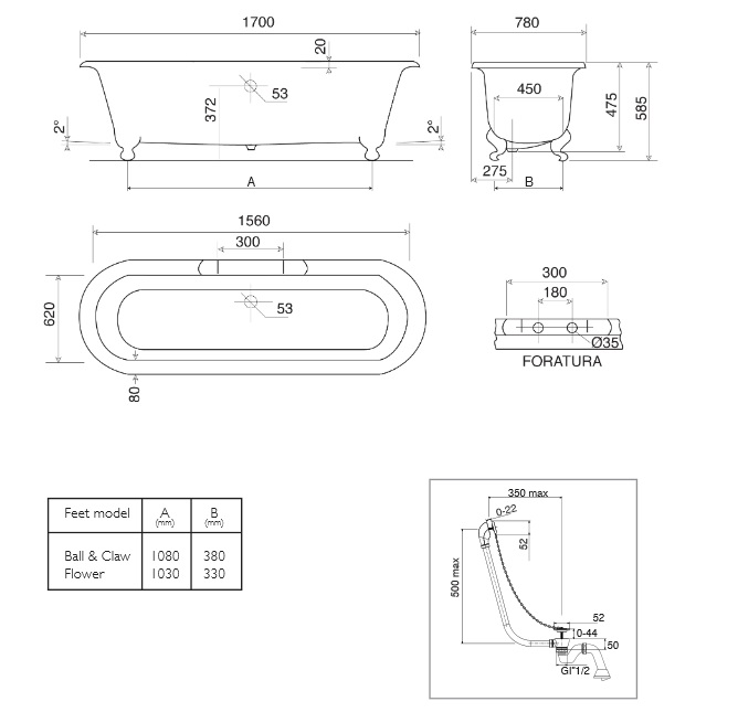 Istnieje możliwość zamówienia wanny malowanej z zewnątrz w kolorze RAL oraz z otworami na baterię - na zapytanie.