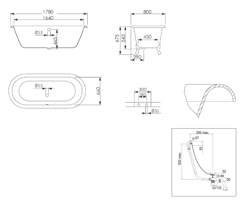 Cena samej wanny z nogami bez syfonu w kolorze biało/srebrnym.