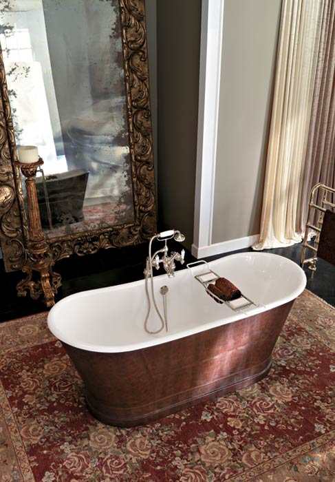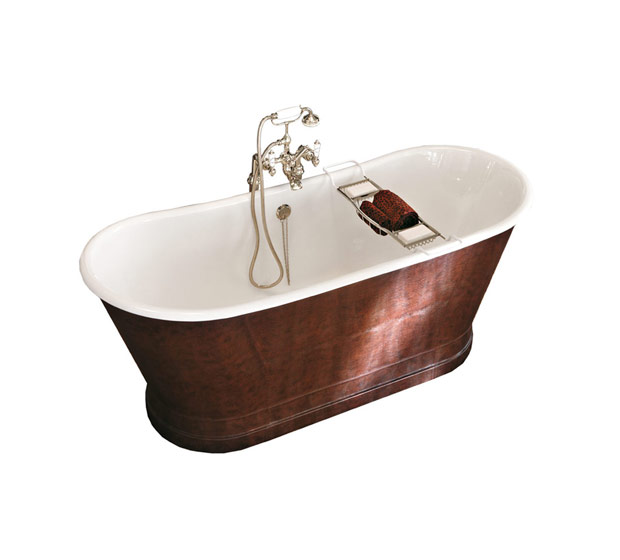 Gentry Home York wanna 170x68 cm żeliwna biała/brązowa skóra 9190