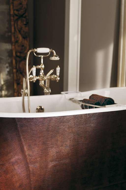 Cena samej wanny bez syfonu w kolorze białym, na zewnątrz brązowa skóra.