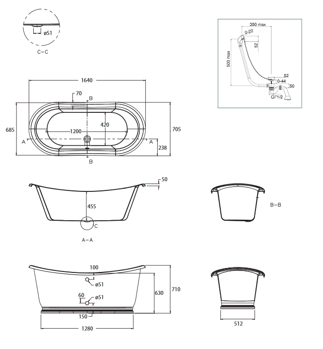 Gentry Home Georgian wanna 164x70,5 cm akrylowa biała 9345