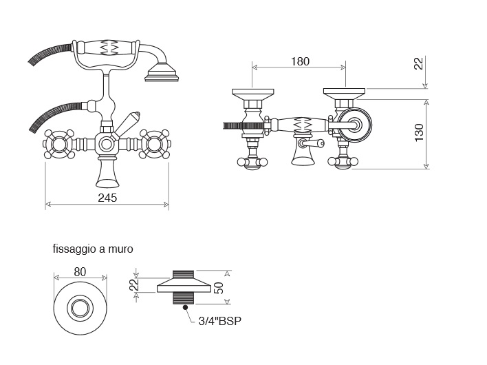 Gentry Home Mayfair bateria wannowa ścienna chrom 8060
