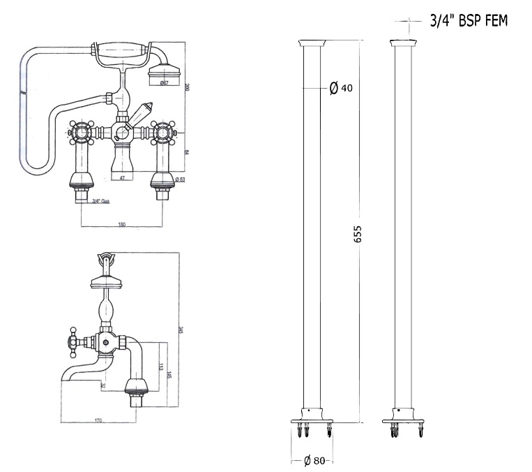 Gentry Home Mayfair bateria wannowa wolnostojąca chrom 8068