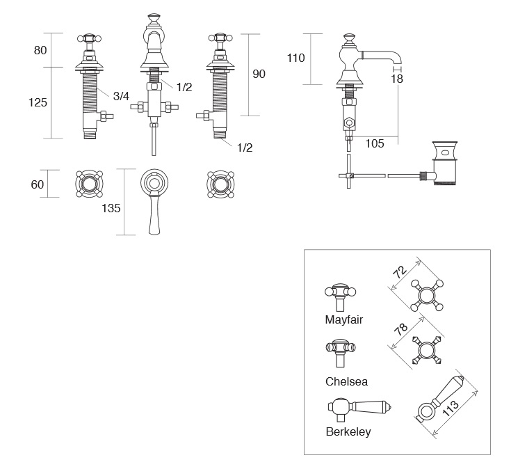 Gentry Home Chelsea bateria umywalkowa 3-otworowa chrom 8145