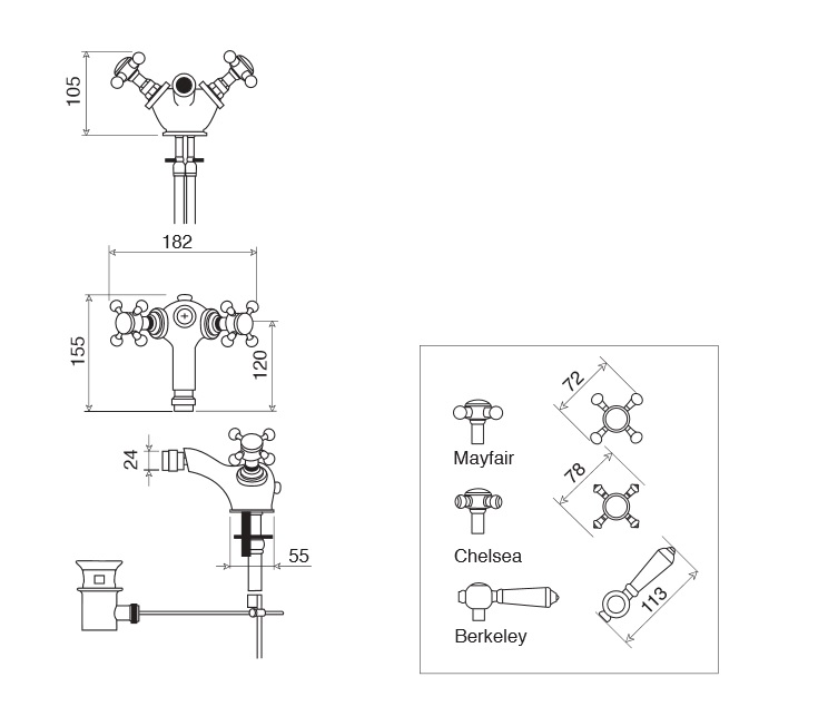 Gentry Home Chelsea bateria bidetowa chrom 8140