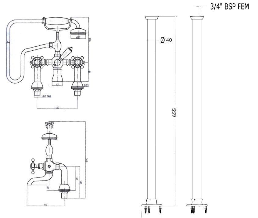 Gentry Home Chelsea bateria wannowa wolnostojąca chrom 8168